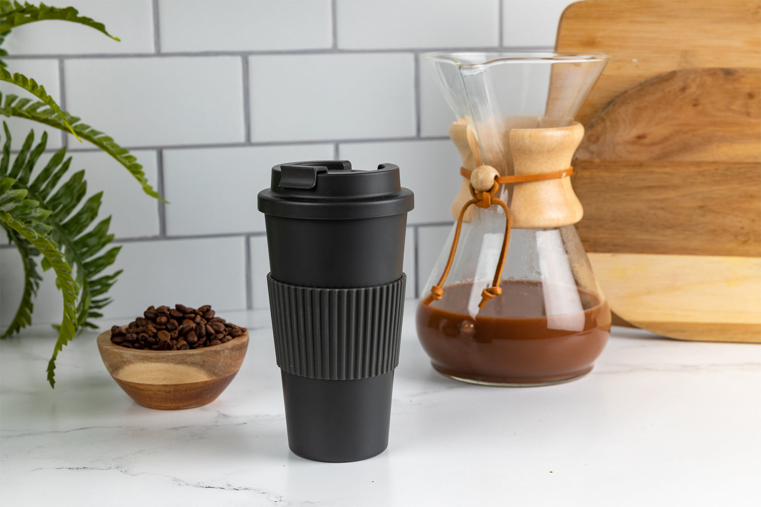 Our plant-based coffee cup is designed to drink on-the-go. Whether you fill up at home or take to the coffee shop, our leak-proof screw-cap and flip cap keep liquids in the cup and off of you.